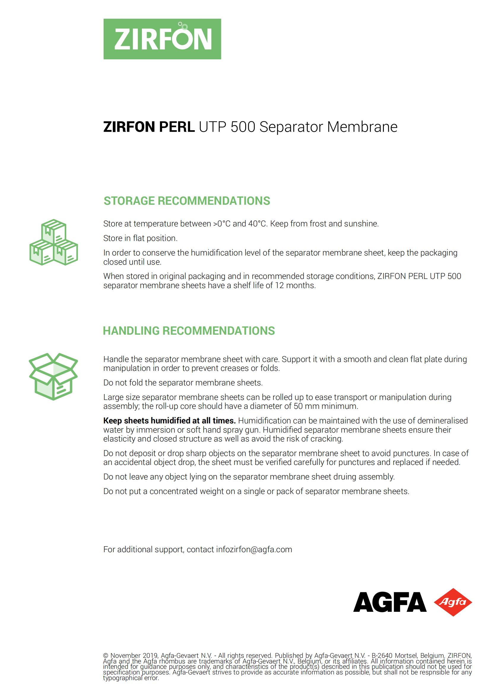 ZIRFON PERL UTP 500分離器膜存儲建議: